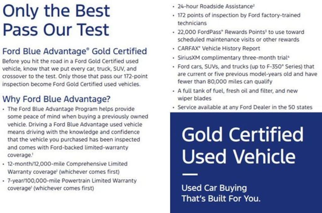 Buy With Confidence--This vehicle is Ford Gold certified. Service available at any Ford Dealer in the 50 states. 22,000 FordPass Rewards Points to use toward scheduled maintenance visits or other rewards, 12 months/12,000 miles (whichever comes first) Comprehensive Limited Warranty Coverage, 7-Year/100,000-Mile (whichever comes first) Powertrain Limited Warranty Coverage, Complimentary 24/7 Roadside Assistance for 7 years, Complimentary SiriusXM 3-month trial, CARFAX Vehicle History Report included, 172 Point Inspection Performed by Factory-Trained Technicians.