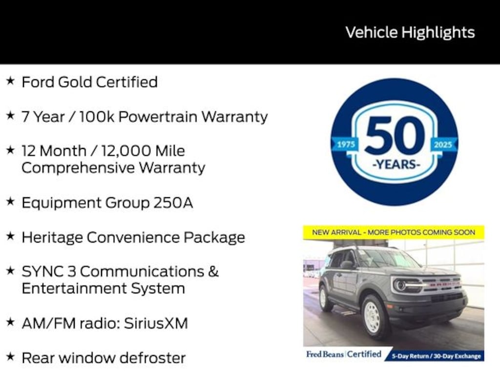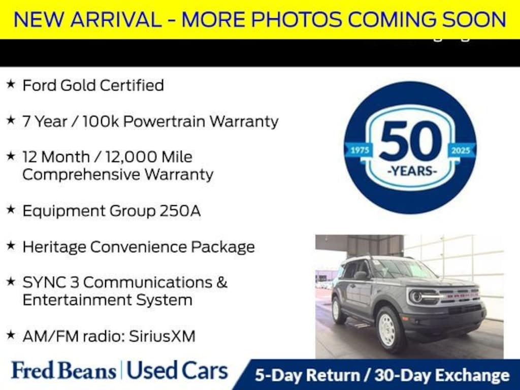 Recent Arrival! 2024 Ford Bronco Sport Heritage 1.5L EcoBoost 8-Speed Automatic 4WD 4D Sport Utility Carbonized Gray Metallic Ford Gold Certified, 7 Year / 100k Powertrain Warranty, 12 Month / 12,000 Mile Comprehensive Warranty, AM/FM radio: SiriusXM, Automatic temperature control, Cargo Management System, Equipment Group 250A, Front Center Armrest, Front fog lights, Heated door mirrors, Heated Front Seats, Heritage Convenience Package, Plaid Cloth Front Bucket Seats, Power door mirrors, Power windows, Premium Wrapped Steering Wheel, Rear Parking Sensors, Rear window defroster, Rear window wiper, Remote keyless entry, Speed control, SYNC 3 Communications & Entertainment System, Tilt steering wheel, Universal Garage Door Opener (UGDO), Wheels: 17" Oxford White-Painted Aluminum, Wireless Charging Pad. 25/29 City/Highway MPG