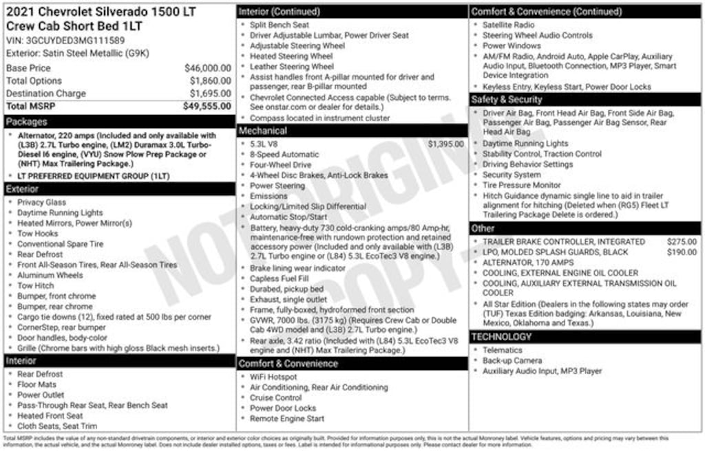 • Convenience Package, Preferred Equipment Group 1LT, and Trailering Package