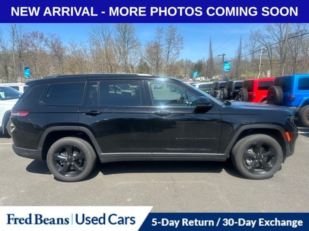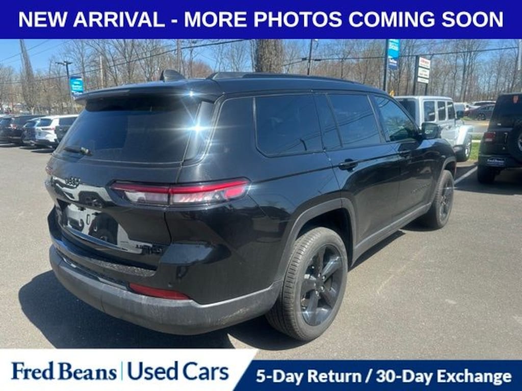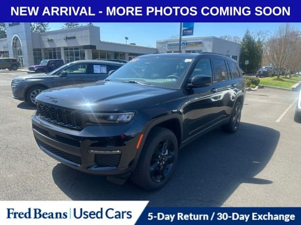 Recent Arrival! 2025 Jeep Grand Cherokee L Limited 3.6L V6 24V VVT 8-Speed Automatic 4WD 4D Sport Utility Diamond Black Crystal Pearlcoat Black Appearance Package, Dual-Pane Panoramic Sunroof, Gloss Black Exterior Accents, Heated front seats, Heated rear seats, Interior Rear Facing Camera, Navigation System, Power Liftgate, Quick Order Package 22E, Wheels: 20" x 8.5" Gloss Black Painted Aluminum.