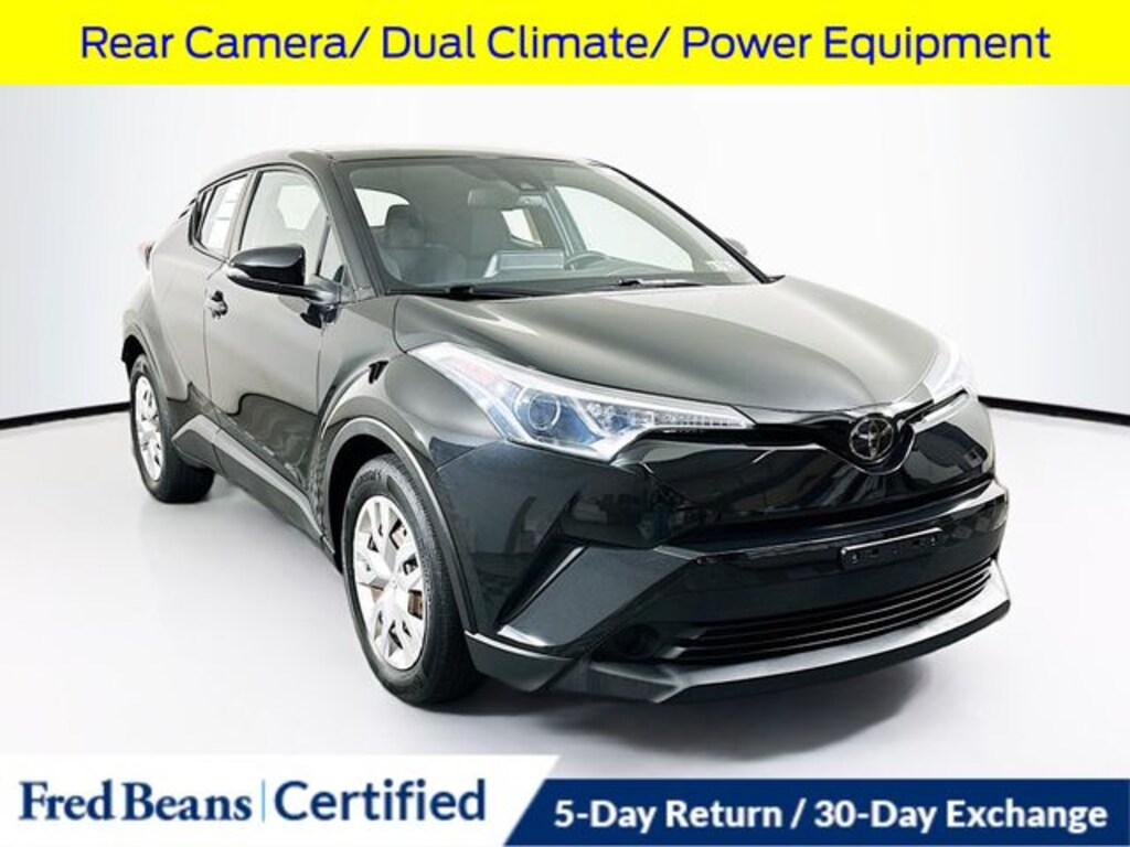 2019 Toyota C-HR LE 2.0L I4 DOHC 16V CVT FWD 4D Sport Utility Black Sand Pearl Local Trade, 3 Month / 4,000 Mile Comprehensive Warranty, Ford Blue Advantage Certified, 17" Steel Wheels, ABS brakes, Active Cruise Control, AM/FM Stereo, Automatic temperature control, Electronic Stability Control, Exterior Parking Camera Rear, Front Bucket Seats, Front dual zone A/C, Heated door mirrors, Illuminated entry, Low tire pressure warning, Power windows, Rear window defroster, Rear window wiper, Remote keyless entry, Tilt steering wheel, Traction control. 27/31 City/Highway MPG